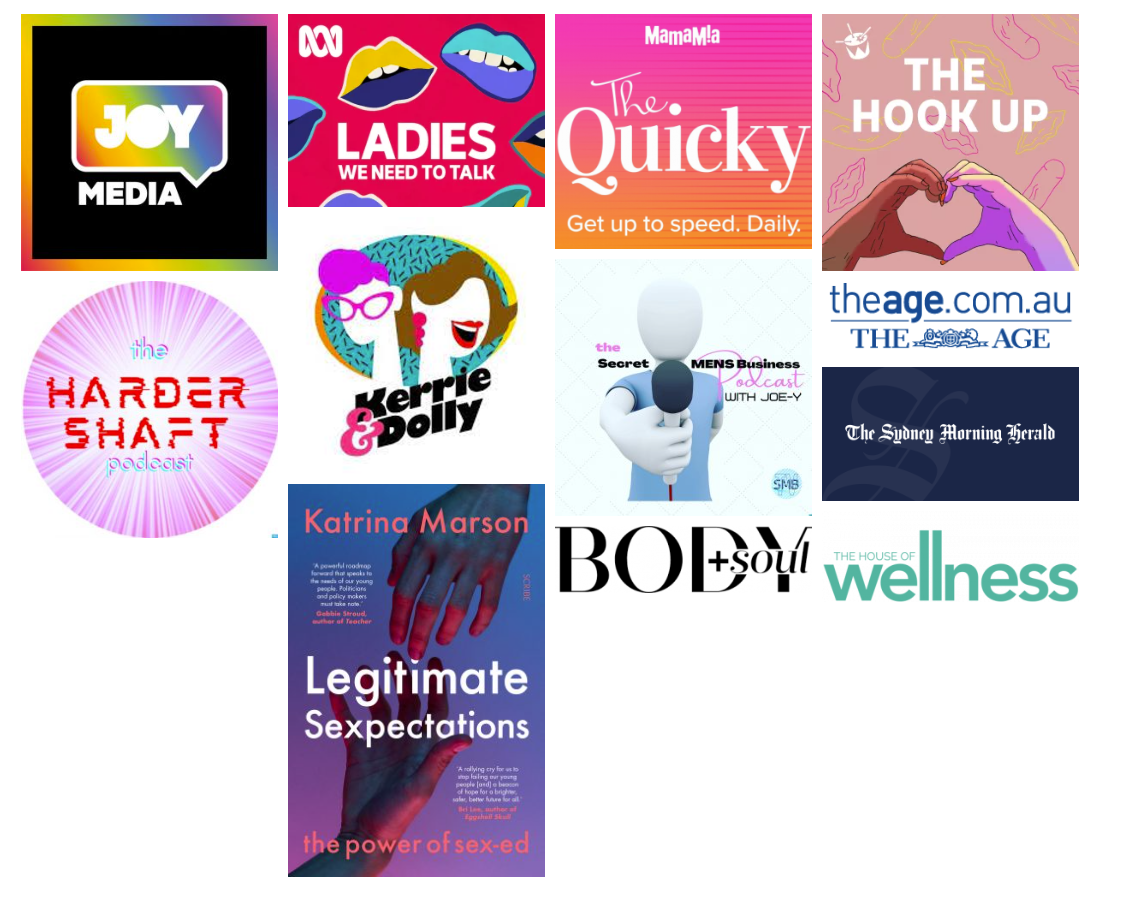 As a highly experienced sexologist, I am frequently approached by the Australian media for comments about sexual pleasure. For 3 years I appeared fortnightly on JOY Media's radio show Breakfast with the Murphys as their resident sex therapist and was a regular guest on the Harder Shaft podcast. I have often been featured on Triple J's The Hook Up, and have many times been asked to participate in podcasts and provide comments in books, and articles in print, and online media.